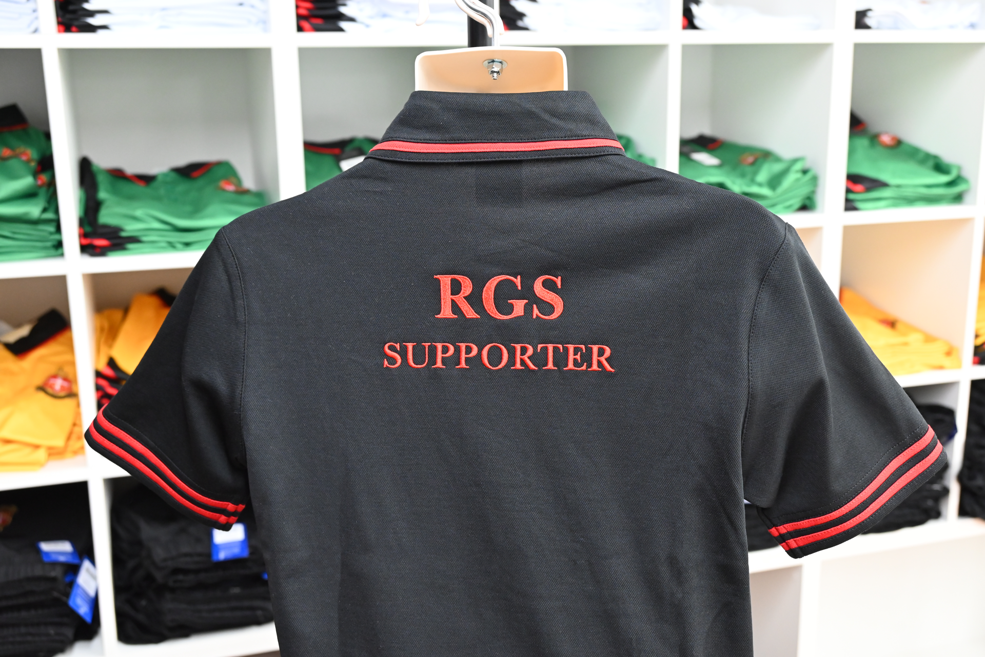 Crafted from breathable, easy-care fabric with a classic or tailored fit, it’s perfect for cheering on the Red and Black, attending school events, or representing RGS in the community.