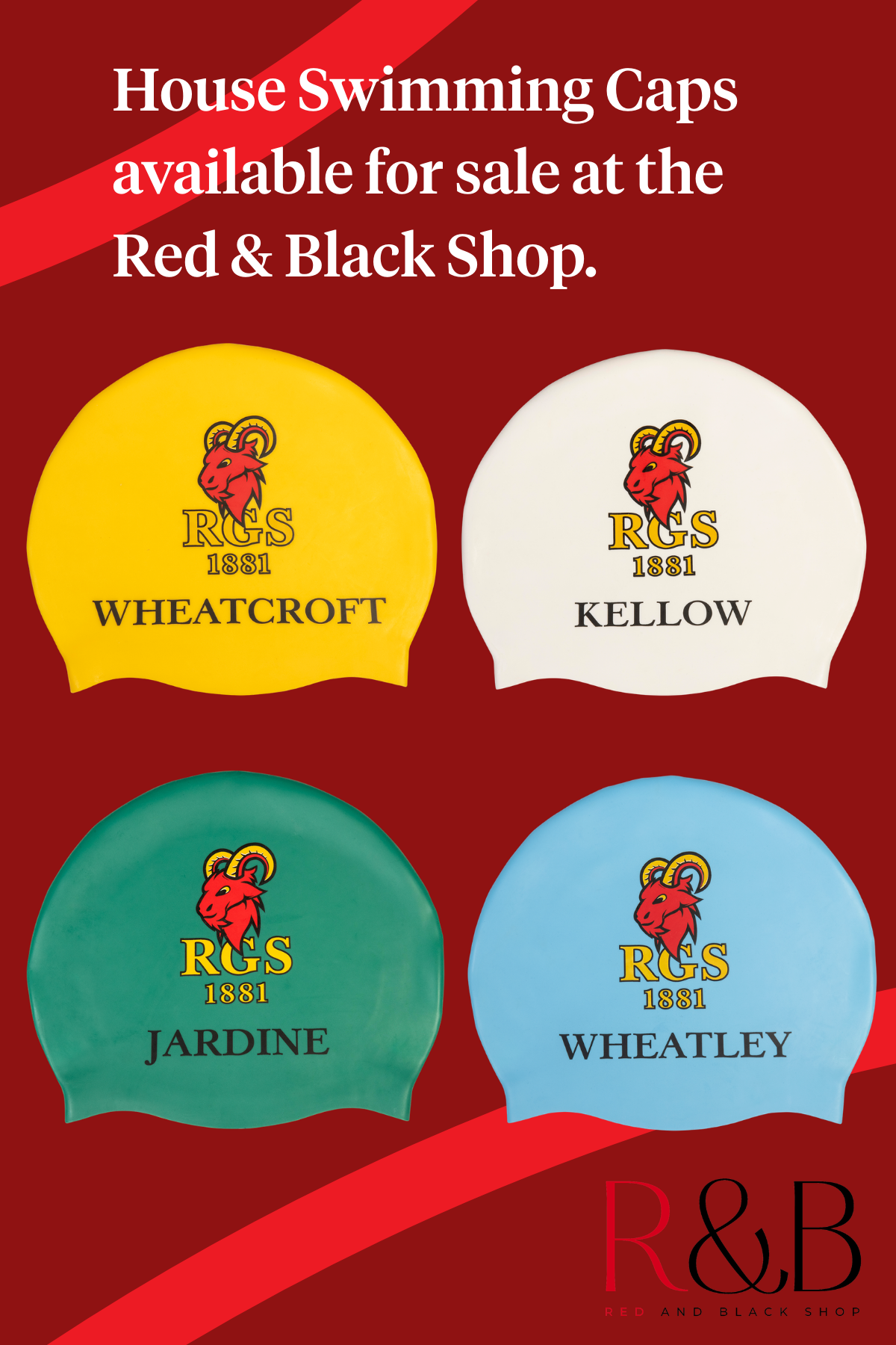 House swimming caps are available for purchase at the Red and Black Shop and are a fantastic way to demonstrate your team spirit in the pool and on the sidelines. Let’s create a sea of House colours and cheer each other on in true RGS style.