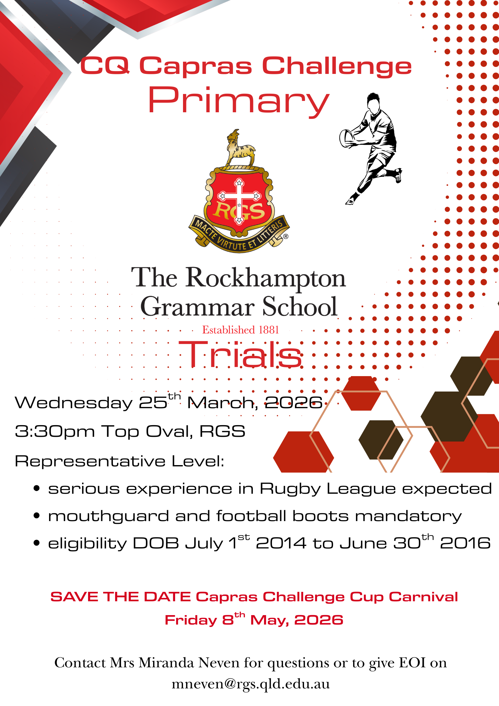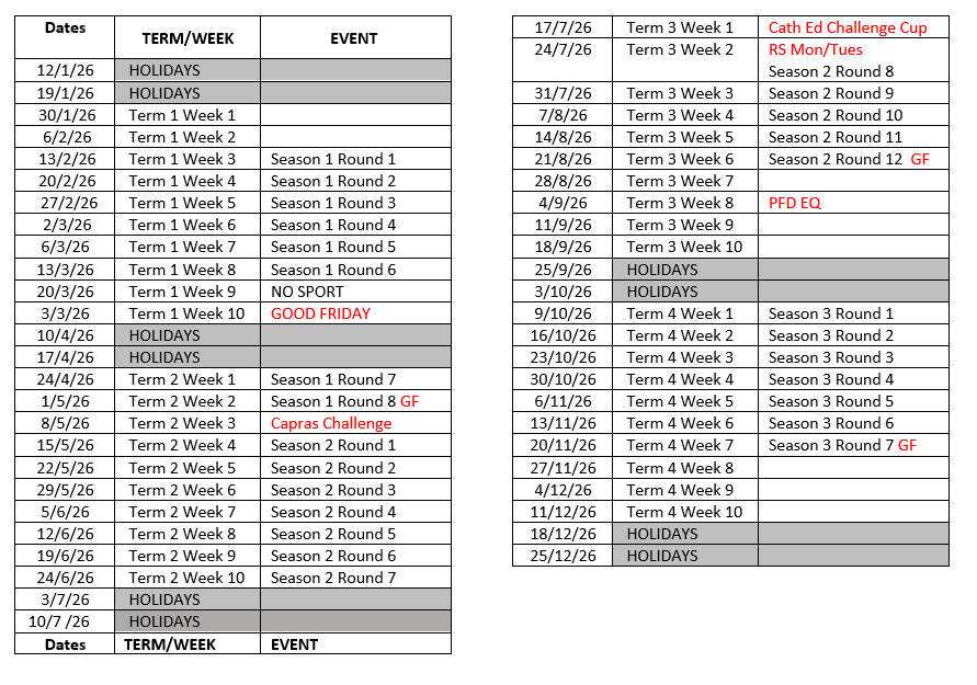 (Please note that all Rockhampton and Capricornia representative recognitions are updated in the newsletter once final teams are provided to the School)
