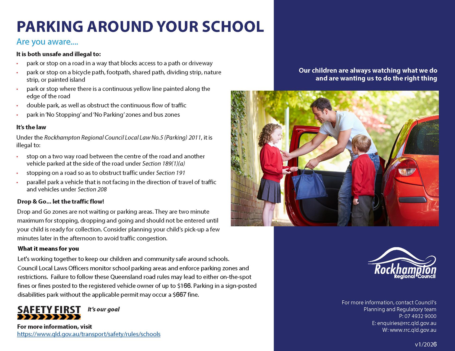 Rockhampton Regional Council has provided the below friendly reminder following a spike in complaints regarding parking issues around schools in the district. Council will continue to conduct patrols around schools, particularly when customer requests are received.