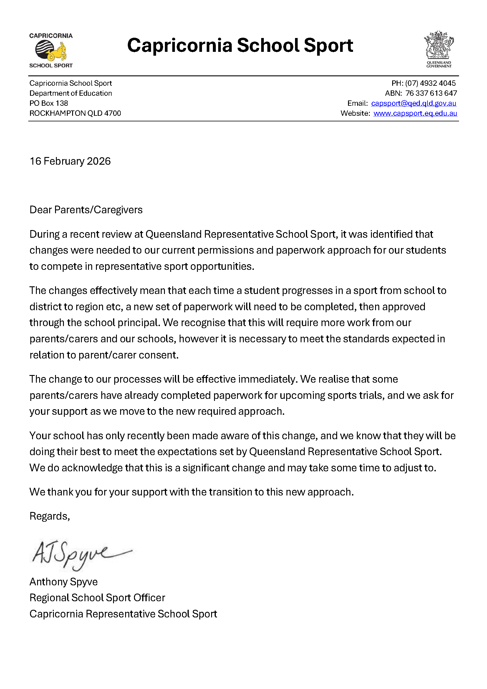 (Please note that all Rockhampton and Capricornia representative recognitions are updated in the newsletter once final teams are provided to the School)