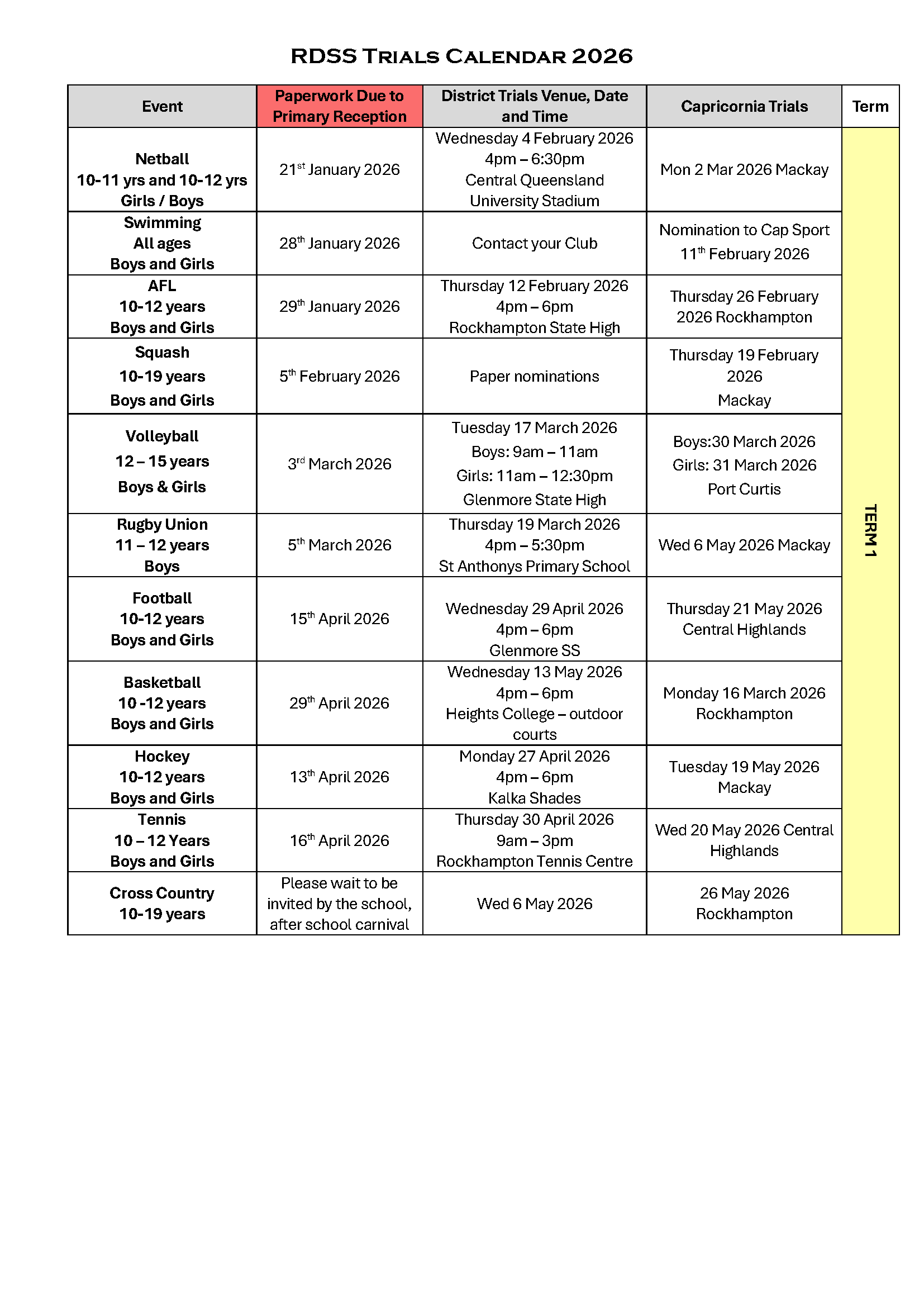 The signed booklet must be handed in at the trials as students will not be allowed to participate without it.