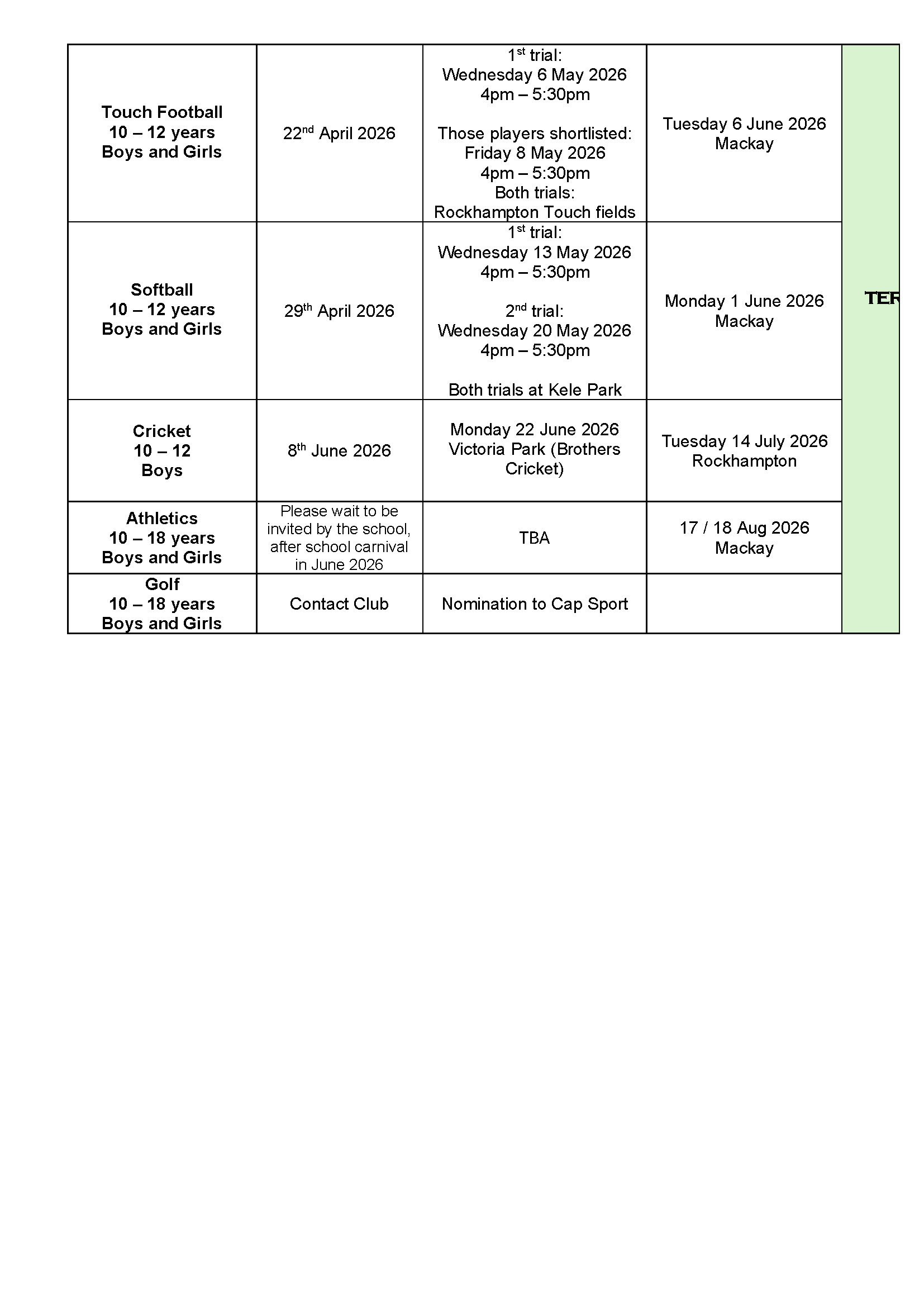 | 21 April | First day of Term 2 - Classes start at 7.50 am |